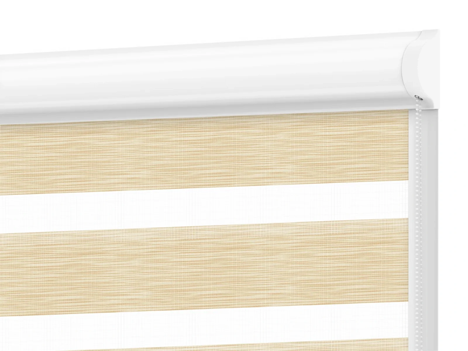 Látka Deň a noc Maurícius patrí medzi najpredávanejšie látky vo svojej kategórií, a to najmä vďaka skvelému pomeru ceny, kvality a dizajnu. Je obľúbenou voľbou pre zákazníkov, ktorí hľadajú praktické, estetické a zároveň cenovo dostupné riešenie pre tienenie interiéru. Jedinečným znakom látky Maurícius je jej dekoratívny vzor, ktorý pripomína štruktúru dreva. Tento efekt dodáva roletám prirodzený, elegantný a teplý vzhľad, vďaka čomu sa perfektne hodia do moderných aj klasických interiérov. Látka tak okrem svojej funkčnosti plní aj významnú estetickú úlohu, čím dokáže oživiť každý priestor. Z technického hľadiska ide o hrubšie tkanú látku – jej hrúbka je približne o 0,4mm väčšia než pri bežných typoch látok deň a noc. Táto vlastnosť zaručuje vyššiu hustotu materiálu, vďaka čomu látka pri úplnom zatiahnutí prepúšťa len minimálne množstvo svetla. To z nej robí ideálnu voľbu pre miestnosti, kde je žiadané väčšie zatienenie a súkromie.