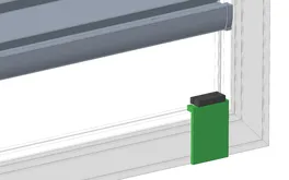 • Na konci šnúrok roliet sa nachádza plastový diel. Plastový diel na hornej strane rolety zasuňte do horných úchytov v ráme okna. Týmto roletu zavesíte.