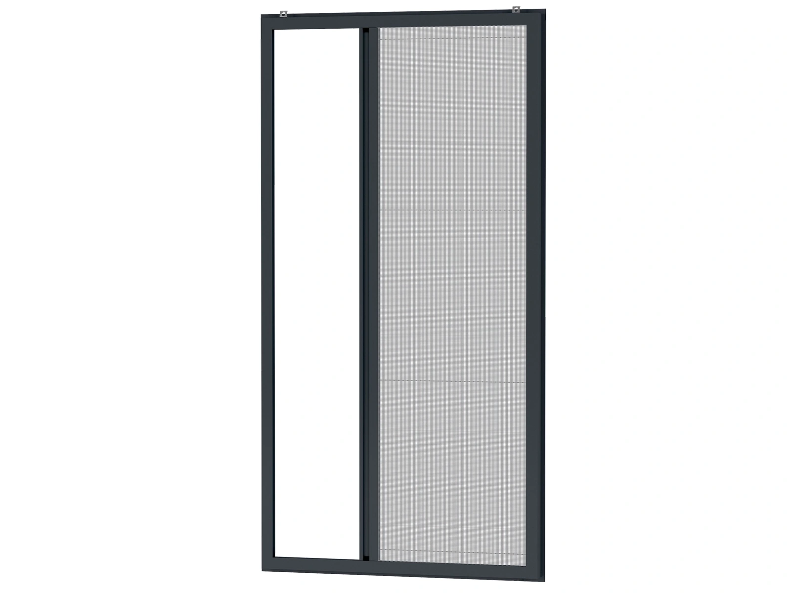 Sieťky proti hmyzu na DVERE - PLISÉ KLIK. Profily sú rezané pod 45° uhlom. Rohový spájač je vo vnútri profilu a teda pohľadovo neviditeľný. Napínanie je riešené pomocou napínača umiestneného v profile jednoduchým posunutím bez potreby demontáže výrobku.