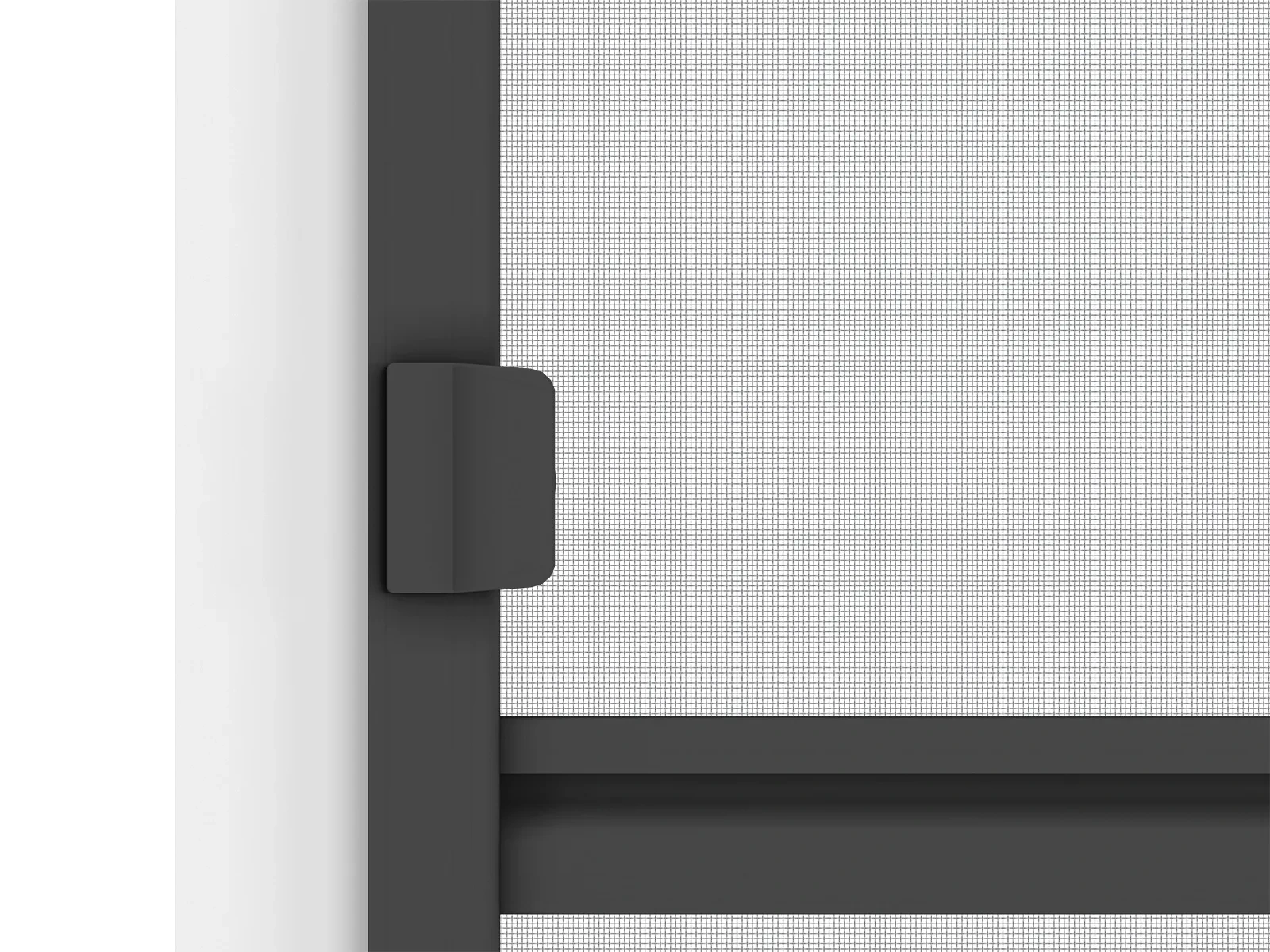 Na výrobu používame vodiaci profil z extrudovaného hliníka, ktorý je pevný, stabilný a odolný voči poškodeniu či korózií. Hliník je zároveň v rovnakej farebnej úprave ako samotné dvere, čo zabezpečuje jednotný a estetický vzhľad. K dispozícií rôzne farebné prevedenia podľa ponuky. Použitá sieťovina je z poplastovaného sklolaminátu. Aby bol chod dverí ešte plynulejší, do systému je zabudovaná jemná štetinka, ktorá pomáha pri hladkom kĺzaní a zároveň zabraňuje prenikaniu drobných druhov hmyzu, ako sú napríklad mravce. Vďaka tomuto riešeniu je manipulácia s dverami tichá a bezproblémová.