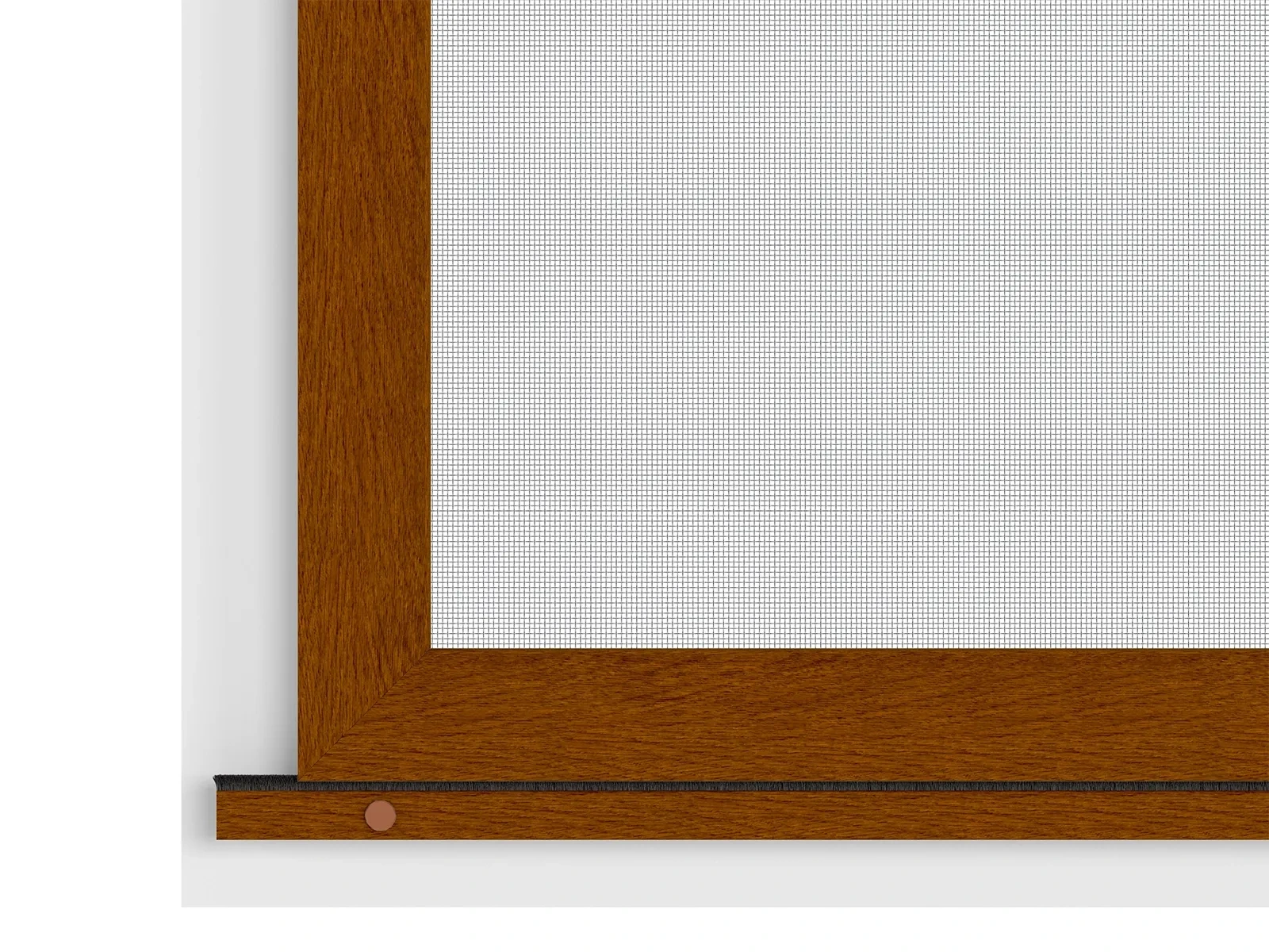 Na výrobu používame vodiaci profil z extrudovaného hliníka, ktorý je pevný, stabilný a odolný voči poškodeniu či korózií. Hliník je zároveň v rovnakej farebnej úprave ako samotné dvere, čo zabezpečuje jednotný a estetický vzhľad. K dispozícií rôzne farebné prevedenia podľa ponuky. Použitá sieťovina je z poplastovaného sklolaminátu. Aby bol chod dverí ešte plynulejší, do systému je zabudovaná jemná štetinka, ktorá pomáha pri hladkom kĺzaní a zároveň zabraňuje prenikaniu drobných druhov hmyzu, ako sú napríklad mravce. Vďaka tomuto riešeniu je manipulácia s dverami tichá a bezproblémová.