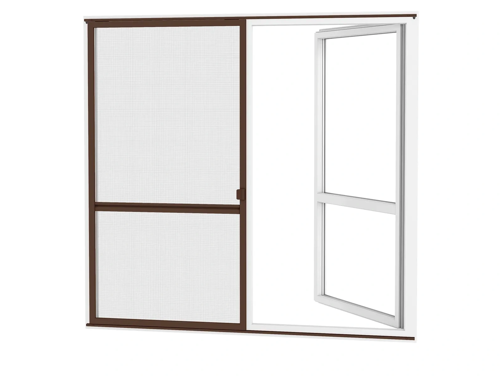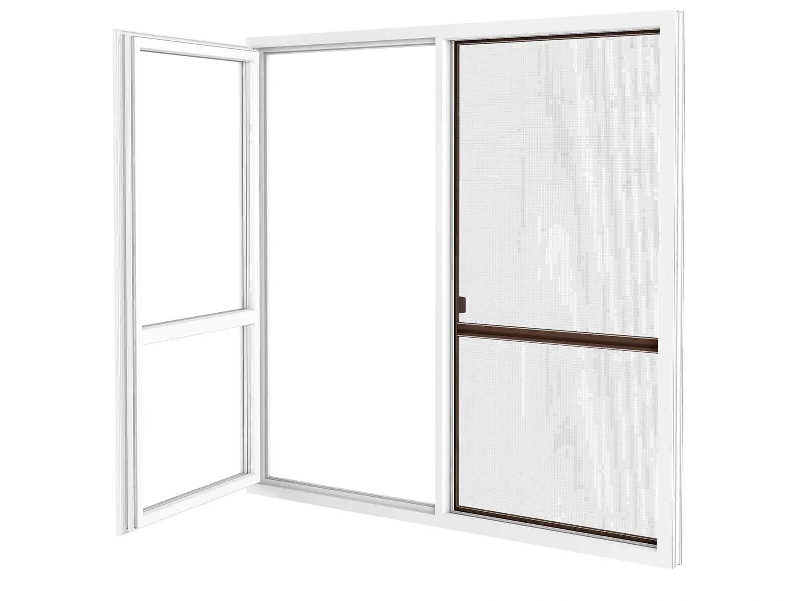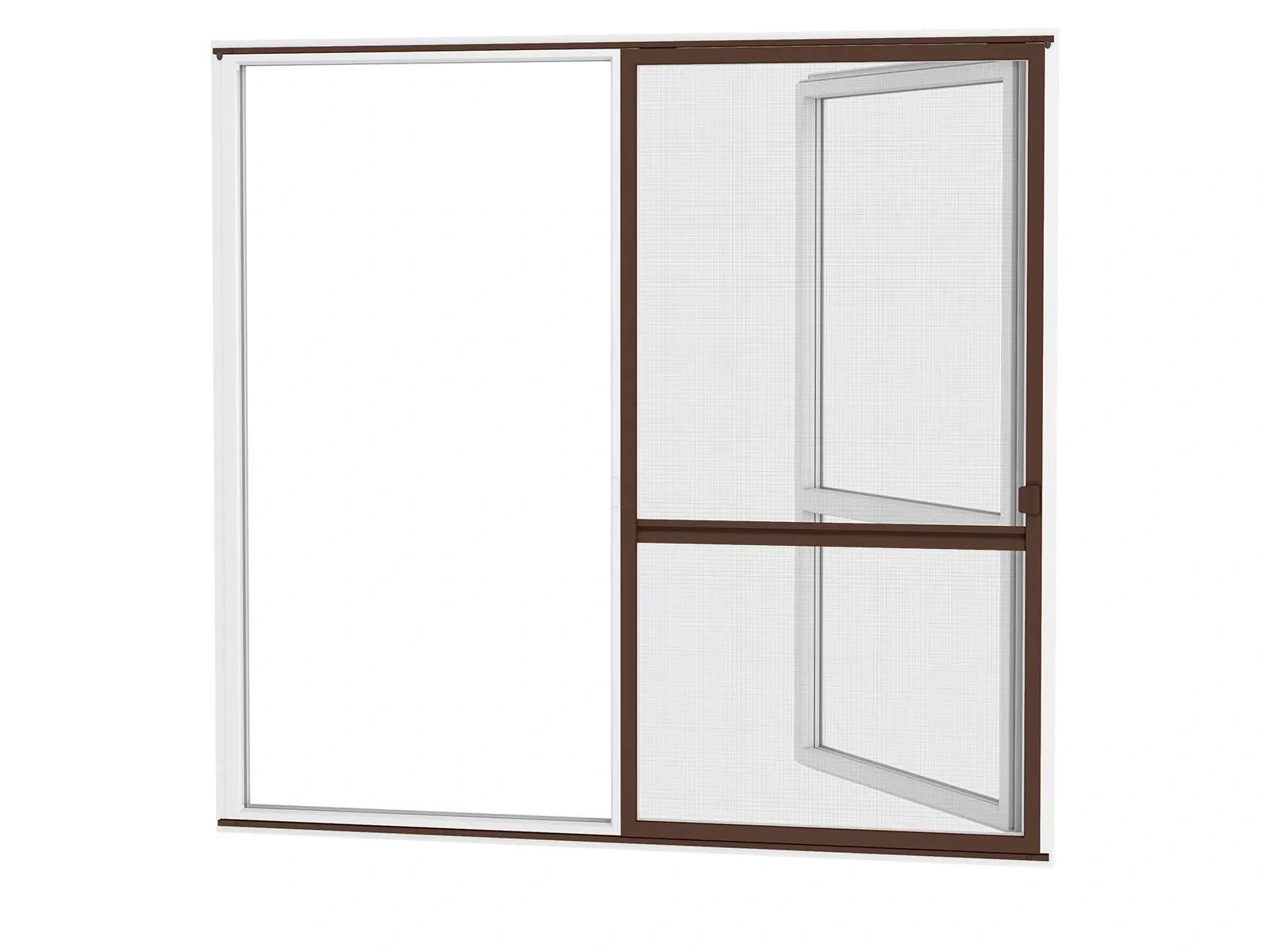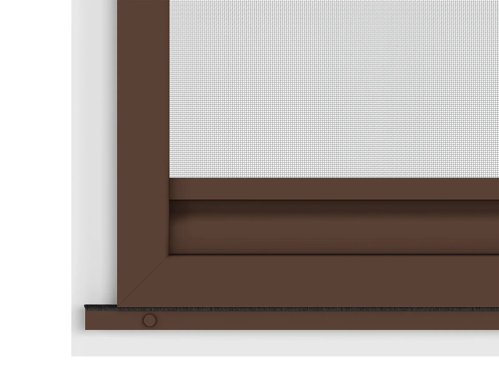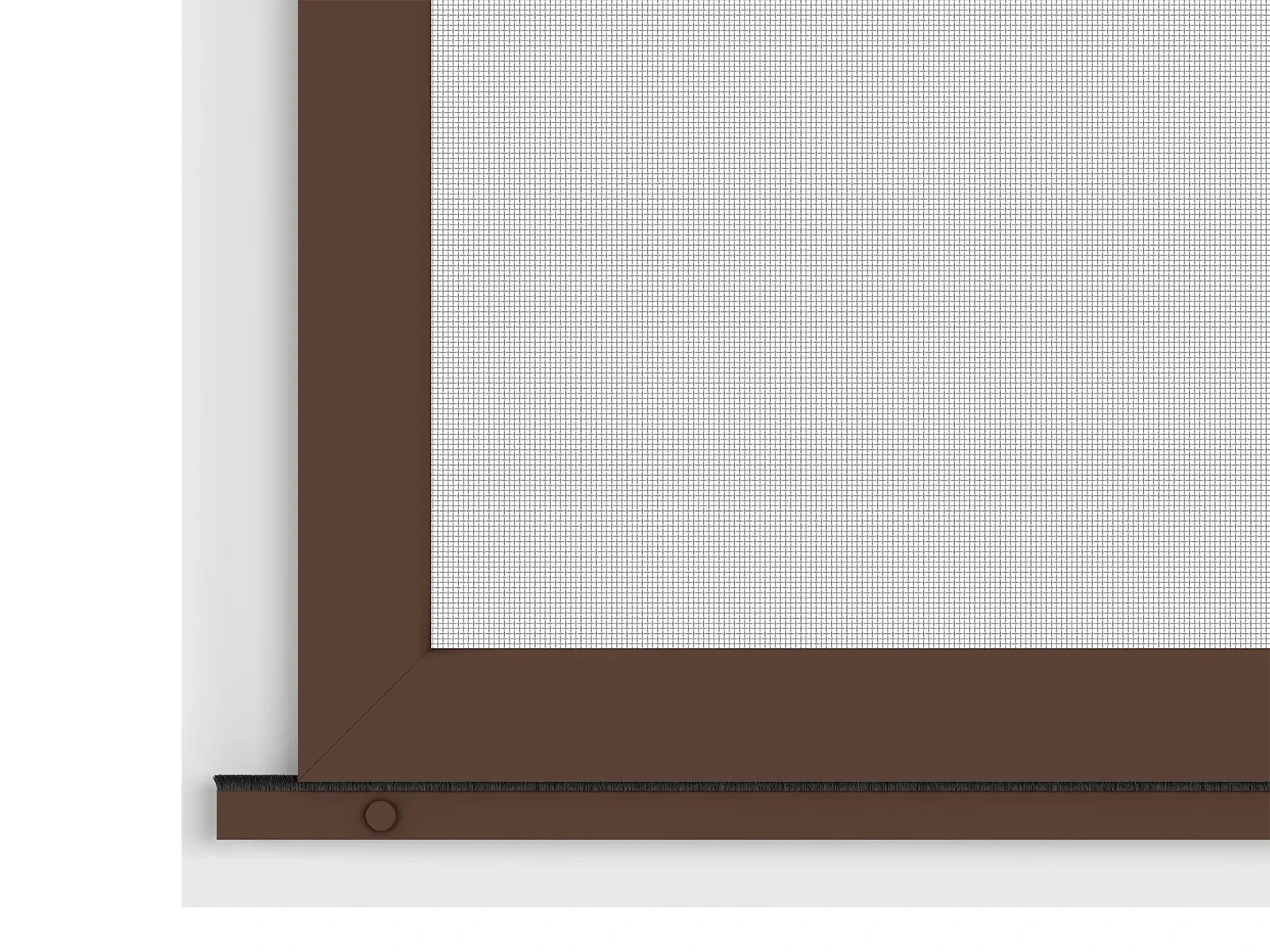 Na výrobu používame vodiaci profil z extrudovaného hliníka, ktorý je pevný, stabilný a odolný voči poškodeniu či korózií. Hliník je zároveň v rovnakej farebnej úprave ako samotné dvere, čo zabezpečuje jednotný a estetický vzhľad. K dispozícií rôzne farebné prevedenia podľa ponuky. Použitá sieťovina je z poplastovaného sklolaminátu. Aby bol chod dverí ešte plynulejší, do systému je zabudovaná jemná štetinka, ktorá pomáha pri hladkom kĺzaní a zároveň zabraňuje prenikaniu drobných druhov hmyzu, ako sú napríklad mravce. Vďaka tomuto riešeniu je manipulácia s dverami tichá a bezproblémová.